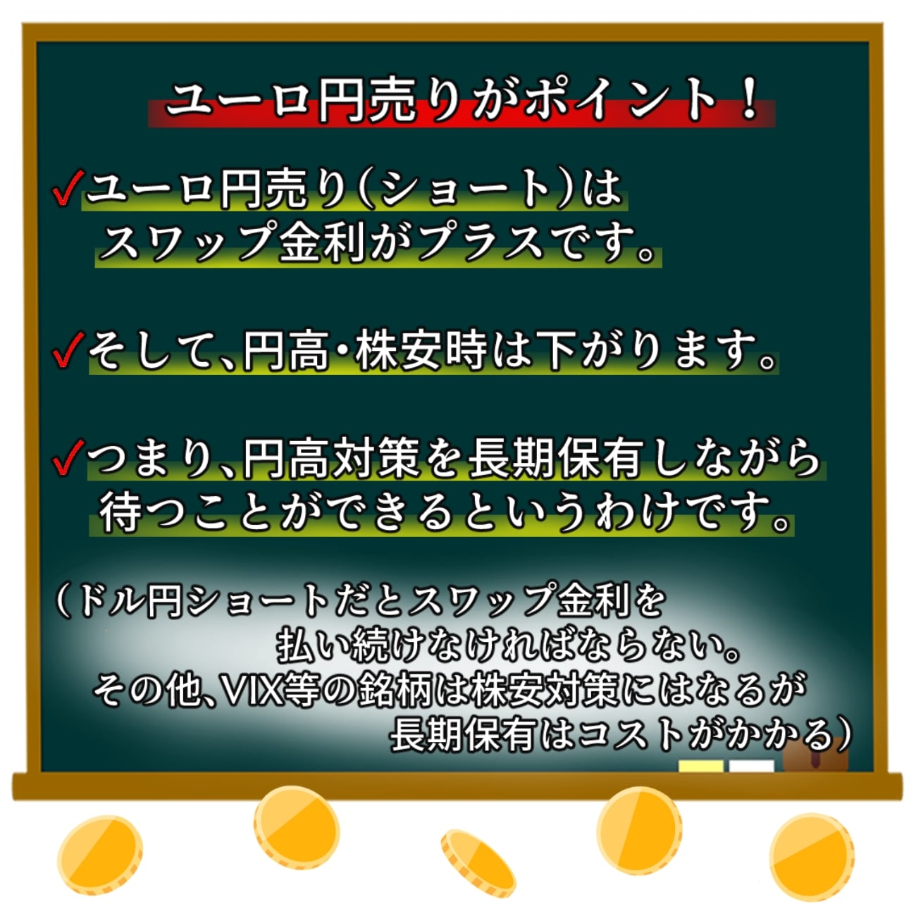 - 円高対策の投資としてユーロ円ショートは正解でした。