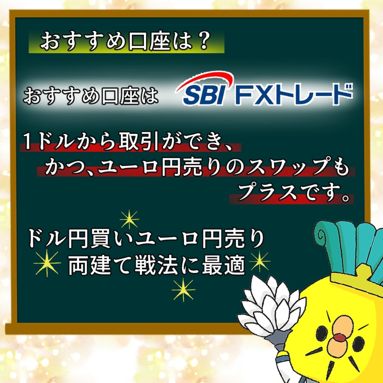 - 初心者ならSBI FXトレードで300ドル、300ユーロずつ取引、スワップの高さではみんなのFXが上回るので中級者の方はおすすめ。